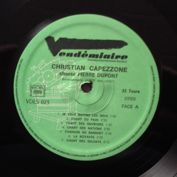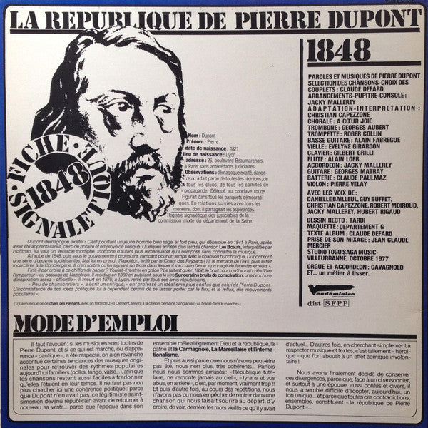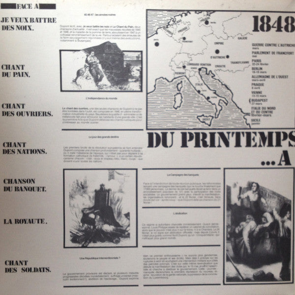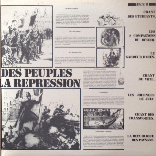 A1. Je Veux Battre Des Noix 1:42 A2. Chant Du Pain 3:50 A3. Chant Des Ouvriers 1:45 A4. Chant Des Nations 2:20 A5. Chanson Du Banquet 3:40 A6. La Royauté 2:55 A7. Chant Des Soldats 4:15 B1. Chant Des Étudiants 2:20 B2. Les Deux Compagnons Du Devoir 2:15 B3. Le Gardeur D'oies 3:45 B4. Chant Du Vote 2:35 B5. Les Journées De Juin 1:55 B6. Chant Des Transportés 3:00 B7. La République Des Paysans 4:05