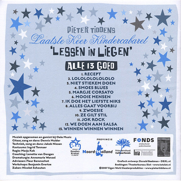 CD was given to the audience of theatrical performance 'Lessen In Liegen', packaged in a 24 page soft-cover booklet.