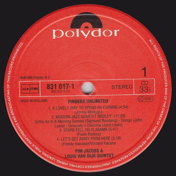 Pim Jacobs & Louis van Dijk Quintet - Fingers Unlimited (LP)