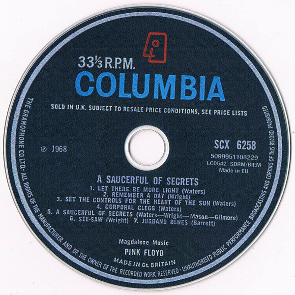 1. Let There Be More Light 5:392. Remember A Day 4:333. Set The Controls For The Heart Of The Sun 5:274. Corporal Clegg 4:125. A Saucerful Of Secrets 12:006. See-Saw 4:377. Jugband Blues 3:00