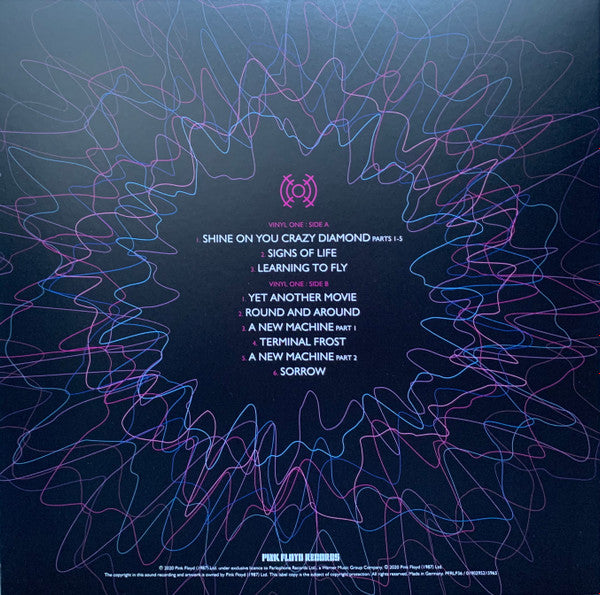 Die cut box cover with hype sticker: "LIVE 3-LP PINK FLOYD Delicate Sound of Thunder Remixed from the original master tapes Heavyweight 180g Vinyl 24-page Booklet 23 songs Approx. 2 1/2 hours Features 9 songs not included on the 1988 2-LP Pink Floyd Records 0190295215965 Brand new remix." Includes 12"x12" colour booklet and download card, with expiry date of 20/11/2025 Made in Germany. Previously unreleased track on vinyl 1988: -Signs Of Life -A New Machine Part1 -Terminal Frost -A New Machine Part2 -On The Run -The Great Gig In The Sky -Welcome To The Machine -Us And Them -One Slip