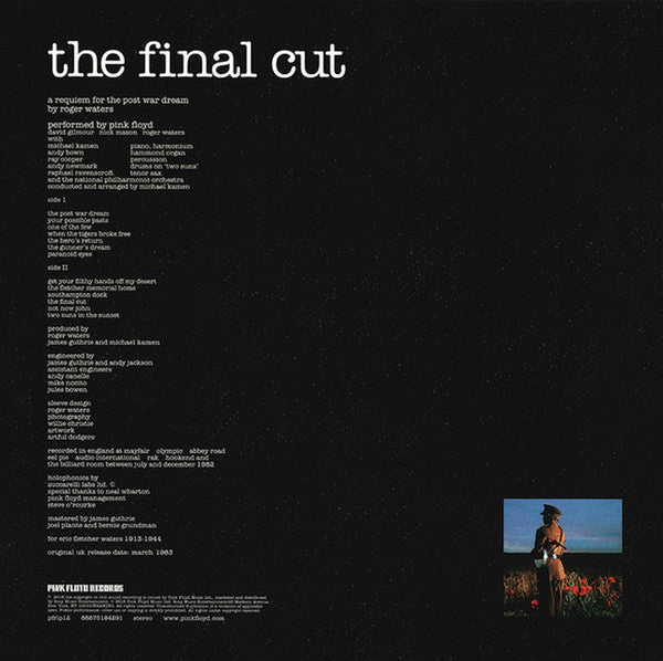 A1. The Post War Dream A2. Your Possible Pasts A3. One Of The Few A4. When The Tigers Broke Free A5. The Hero's Return A6. The Gunner's Dream A7. Paranoid Eyes B1. Get Your Filthy Hands Off My Desert B2. The Fletcher Memorial Home B3. Southampton Dock B4. The Final Cut B5. Not Now John B6. Two Suns In The Sunset