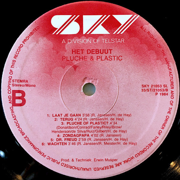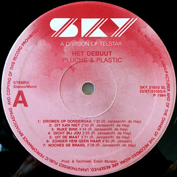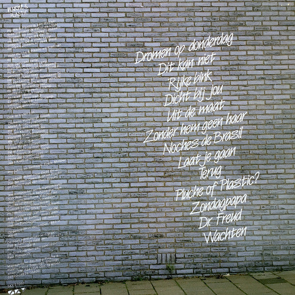 A1. Dromen Op Donderdag 1:32 A2. Dit Kan Niet 2:50 A3. Rijke Bink 4:44 A4. Dicht Bij Jou 3:23 A5. Uit De Maat 3:21 A6. Zonder Hem Geen Haar 4:55 A7. Noches De Brasil 2:28 B1. Laat Je Gaan 3:58 B2. Terug 4:24 B3. Pluche Of Plastic? 4:34 B4. Zondagpapa 4:02 B5. Dr. Freud 2:59 B6. Wachten 3:46