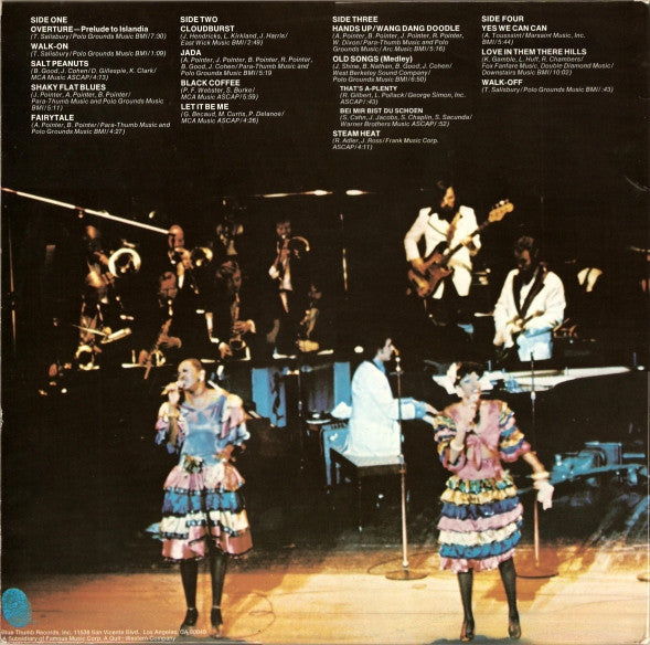 A1. Overture - Prelude To Islandia 7:30 A2. Walk-On 1:09 A3. Salt Peanuts 4:13 A4. Shaky Flat Blues 5:11 A5. Fairytale 4:27 B1. Cloudburst 2:49 B2. Jada 5:19 B3. Black Coffee 5:59 B4. Let It Be Me 4:26 C1. Hands Up / Wang Dang Doodle 5:16 C2. Old Songs (Medley) 6:50 C2a. That's A-Plenty 0:43 C2b. Bei Mir Bist Du Schoen 0:52 C3. Steam Heat 4:11 D1. Yes We Can Can 5:44 D2. Love In Them There Hills 10:02 D3. Walk-Off 0:43