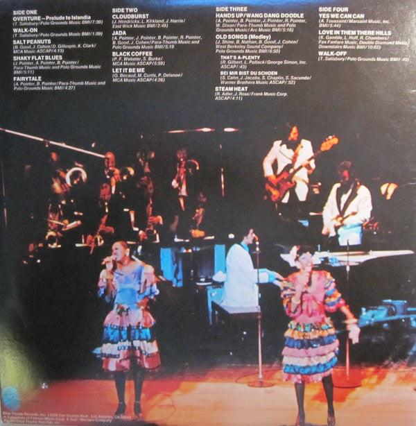 A1. Overture (Prelude To Islandia) 7:30 A2. Walk-On 1:09 A3. Salt Peanuts 4:13 A4. Shaky Flat Blues 5:11 A5. Fairytale 4:27 B1. Cloudburst 2:49 B2. Jada 5:19 B3. Black Coffee 5:59 B4. Let It Be Me 4:26 C1. Hands Up / Wang Dang Doodle 5:16 C2. Old Songs (Medley) 6:50 C2a. That's A-Plenty 0:43 C2b. Bei Mir Bist Du Schoen 0:52 C3. Steam Heat 4:11 D1. Yes We Can Can 5:44 D2. Love In Them There Hills 10:02 D3. Walk-Off 0:43
