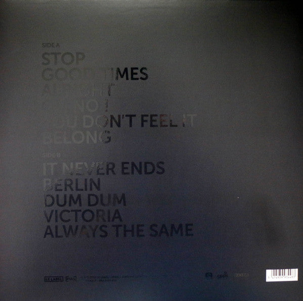A1. Stop A2. Good Times A3. Alright A4 . Ho No ! A5. You Don't Feel It A6. Belong B1. It Never Ends B2. Berlin B3. Dum Dum B4. Victoria B5. Always The Same