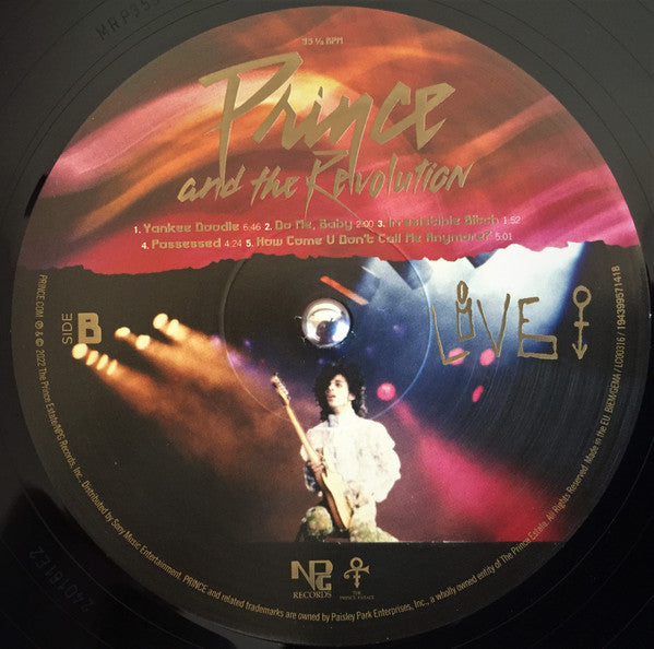 A1. Let's Go Crazy 6:03 A2. Delirious 2:51 A3. 1999 5:51 A4. Little Red Corvette 3:38 A5. Take Me With U 4:56 B1. Yankee Doodle 6:46 B2. Do Me, Baby 4:40 B3. Irresistible Bitch 2:00 B4. Possessed 4:24 B5. How Come U Don't Call Me Anymore? 5:05 C1. Let's Pretend We're Married 4:15 C2. International Lover 1:55 C3. God 7:43 C4. Computer Blue 4:27 D1. Darling Nikki 5:02 D2. The Beautiful Ones 5:16 D3. When Doves Cry 9:28 E1. I Would Die 4 U 3:26 E2. Baby, I'm A Star 11:33 F. Purple Rain 19:25