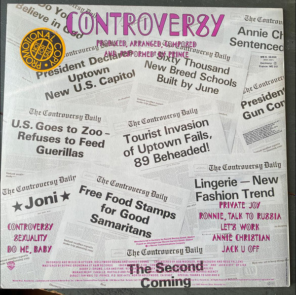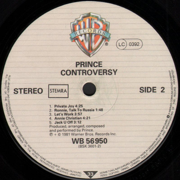 A1. Controversy 7:14 A2. Sexuality 4:20 A3. Do Me, Baby 7:47 B1. Private Joy 4:25 B2. Ronnie, Talk To Russia 1:48 B3. Let's Work 3:57 B4. Annie Christian 4:21 B5. Jack U Off 3:12