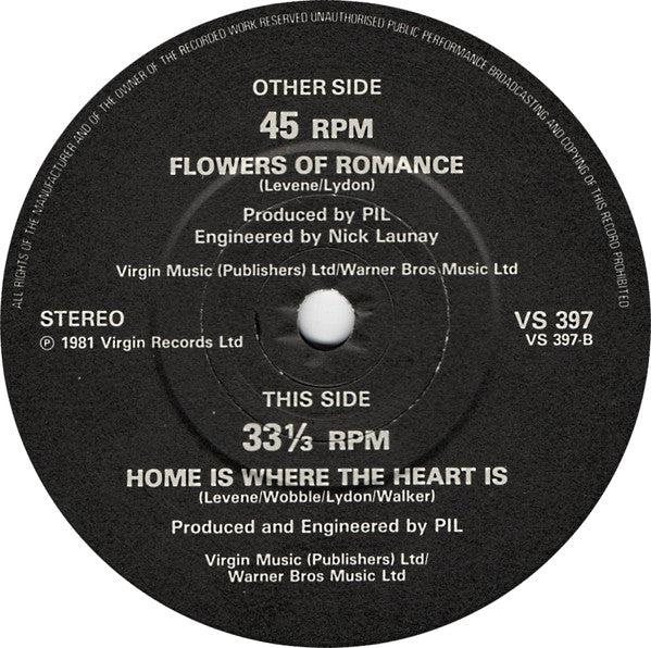 Public Image Ltd.* - Flowers Of Romance (7", Single)