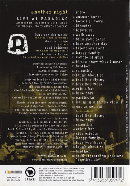Licensed To PIAS Benelux Recorded At Paradiso Amsterdam Mixed At Galaxy Studios Mastered At Studio Hilversum Phonographic Copyright (p) Racoon (4) Copyright (c) Racoon (4) Glass Mastered At Sonopress Arvato Glass Mastered At Sonopress Arvato Glass Mastered At Sonopress Arvato