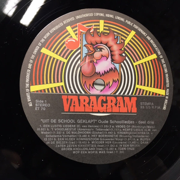 Label variation with the rooster logo against a coloured, 'sun ray' background; compare to the labels of [r14495222, which have the rooster against a black background. Year of release not printed anywhere on release.