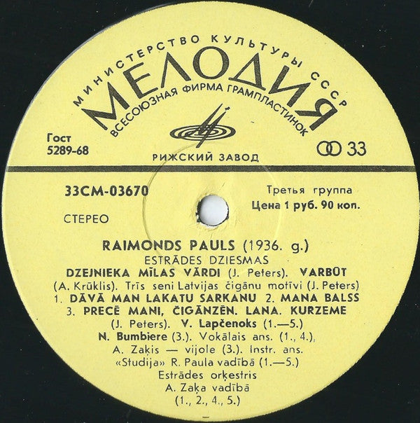 Raimonds Pauls - Raimonds Pauls (LP, Album)