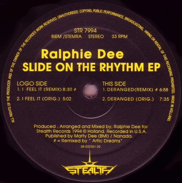 A1. I Feel It (Remix) 8:30 A2. I Feel It (Orig.) 5:02 B1. Deranged (Remix) 6:58 B2. Deranged (Orig.) 7:35
