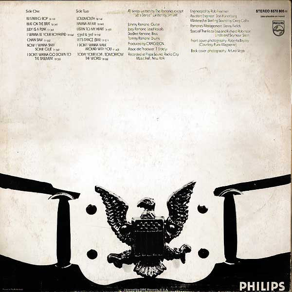 A1. Blitzkrieg Bop 2:12 A2. Beat On The Brat 2:30 A3. Judy Is A Punk 1:30 A4. I Wanna Be Your Boyfriend 2:24 A5. Chain Saw 1:55 A6. Now I Wanna Sniff Some Glue 1:34 A7. I Don't Wanna Go Down To The Basement 2:35 B1. Loudmouth 2:14 B2. Havana Affair 2:00 B3. Listen To My Heart 1:56 B4. 53rd & 3rd 2:19 B5. Let's Dance 1:51 B6. I Don't Wanna Walk Around With You 1:43 B7. Today Your Love, Tomorrow The World 2:09