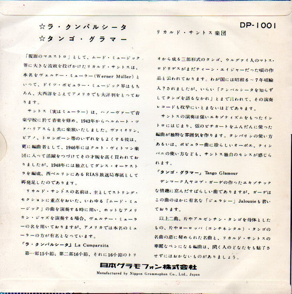 Ricardo Santos And His Orchestra - La Cumparsita (7", Mono)
