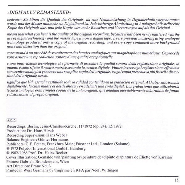 Recording: Berlin, Jesus-Christus-Kirche, 11/1972 (op. 24), 12/1972