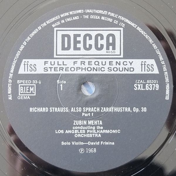 On the back cover the orchestra appears as "The Los Angeles Philharmonic Orchestra", on the front cover as "Los Angeles Philharmonic" and on the labels it appears as "Los Angeles Philharmonic Orchestra".