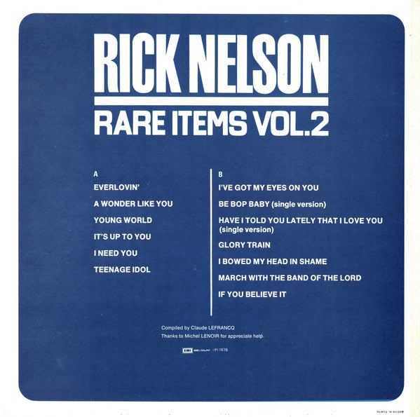 Artist on sleeve: Rick Nelson