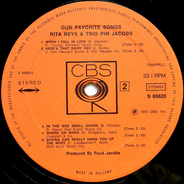 Rita Reys & The Pim Jacobs Trio - Our Favorite Songs (LP, Album)