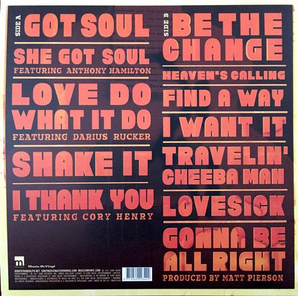 A1. Got Soul A2. She Got Soul A3. Love Do What It Do A4. Shake It A5. I Thank You B1. Be The Change B2. Heaven's Calling B3. Find A Way B4. I Want It B5. Travelin' Cheeba Man B6. Lovesick B7. Gonna Be All Right