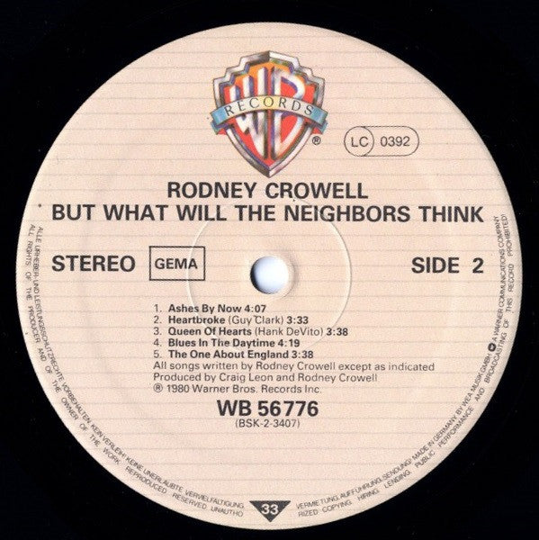Rodney Crowell - But What Will The Neighbors Think (LP, Album)