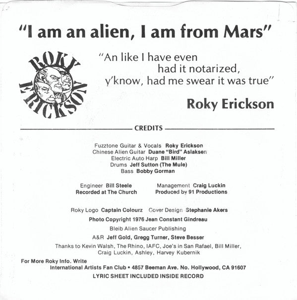 This variant has Roky quote on the back sleeve ("I am an alien, I am from Mars").