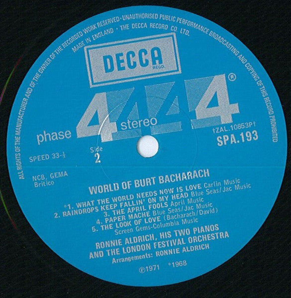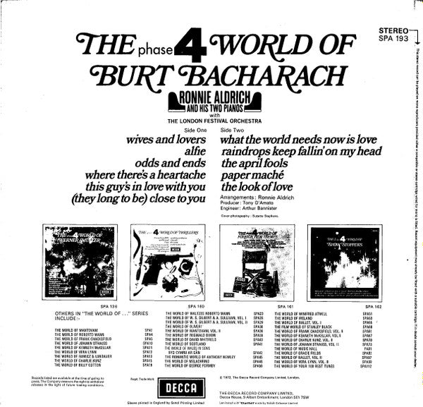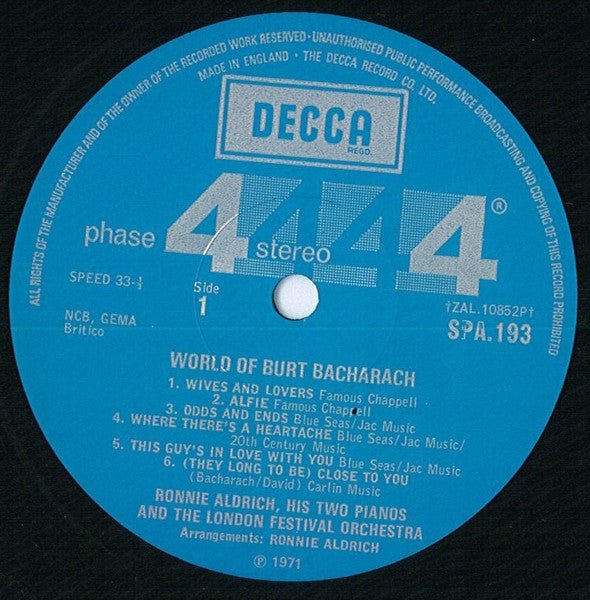 A1. Wives And Lovers A2. Alfie A3. Odds And Ends A4. Where There's A Heartache A5. This Guy's In Love With You A6. (They Long To Be) Close To You B1. What The World Needs Now Is Love B2. Raindrops Keep Fallin' On My Head B3. The April Fools B4. Paper Maché B5. The Look Of Love