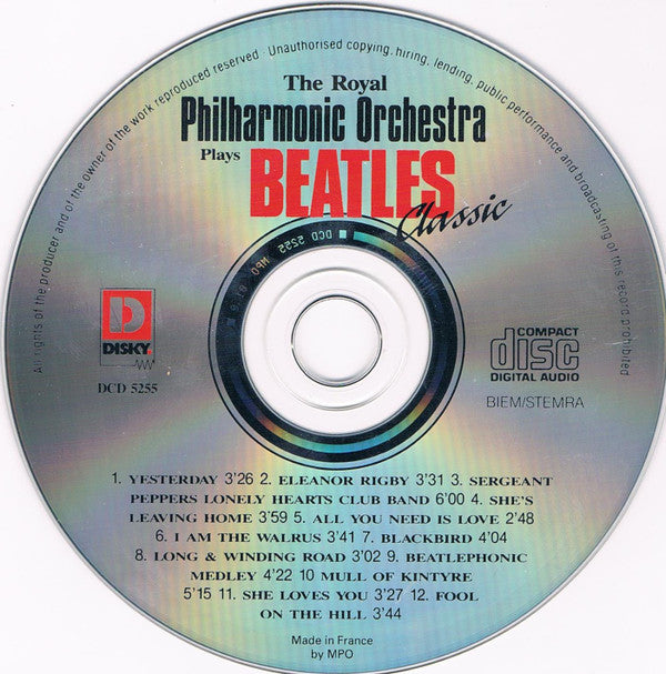 1. Yesterday 3:292. Eleanor Rigby 3:313. Sergeant Peppers Lonely Hearts Club Band 5:544. She's Leaving Home 3:565. All You Need Is Love 2:476. I Am The Walrus 3:357. Blackbird 3:588. Long & Winding Road 2:599. Beatlephonic Medley 4:1710. Mull Of Kintyre 5:0811. She Loves You 3:2112. Fool On The Hill 3:39