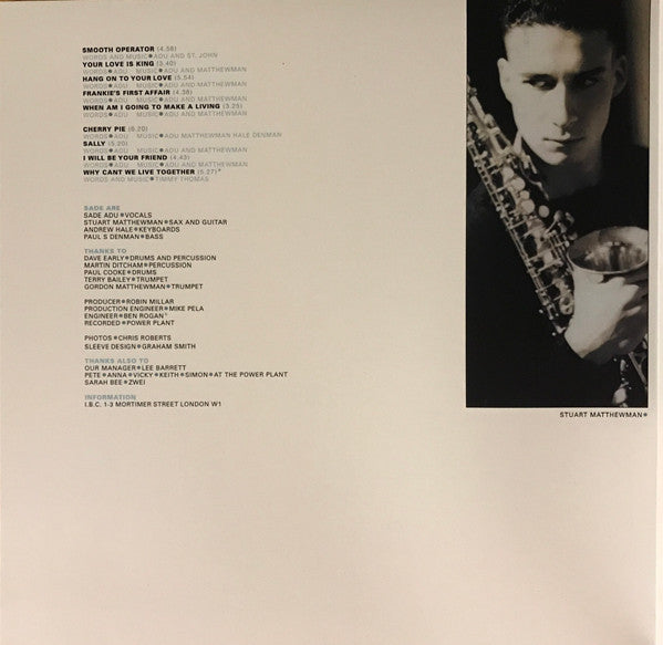 A1. Smooth Operator 4:58 A2. Your Love Is King 3:40 A3. Hang On To Your Love 5:54 A4. Frankie's First Affair 4:38 A5. When Am I Going To Make A Living 3:25 B1. Cherry Pie 6:20 B2. Sally 5:20 B3. I Will Be Your Friend 4:43 B4. Why Can't We Live Together 5:27 . Promise C1. Is It A Crime 6:18 C2. The Sweetest Taboo 4:35 C3. War Of The Hearts 6:47 C4. Jezebel 5:30 D1. Mr Wrong 2:50 D2. Never As Good As The First Time 5:01 D3. Fear 4:05 D4. Tar Baby 3:58 D5. Maureen 4:22 . Stronger Than Pride E1. Love Is Stronger Than Pride 4:16 E2. Paradise 4:01 E3. Nothing Can Come Between Us 4:21 E4. Haunt Me 5:48 E5. Turn My Back On You 6:05 F1. Keep Looking 5:20 F2. Clean Heart 3:59 F3. Give It Up 3:49 F4. I Never Thought I'd See The Day 4:12 F5. Siempre Hay Esperanza 5:16 . Love Deluxe G1. No Ordinary Love G2. Feel No Pain G3. I Couldn't Love You More G4. Like A Tattoo H1. Kiss Of Life H2. Cherish The Day H3. Pearls H4. Bullet Proof Soul H5. Mermaid . Lovers Rock I1. By Your Side 4:34 I2. Flow 4:34 I3. King Of Sorrow 4:53 I4. Somebody Already Broke My Heart 5:01 I5. All About Our Love 2:40 I6. Slave Song 4:12 J1. The Sweetest Gift 2:18 J2. Every Word 4:04 J3. Immigrant 3:48 J4. Lovers Rock 4:13 J5. It's Only Love That Gets You Through 3:53 . Soldier Of Love K1. The Moon And The Sky K2. Soldier Of Love K3. Morning Bird K4. Babyfather K5. Long Hard Road L1. Be That Easy L2. Bring Me Home L3. In Another Time L4. Skin L5. The Safest Place