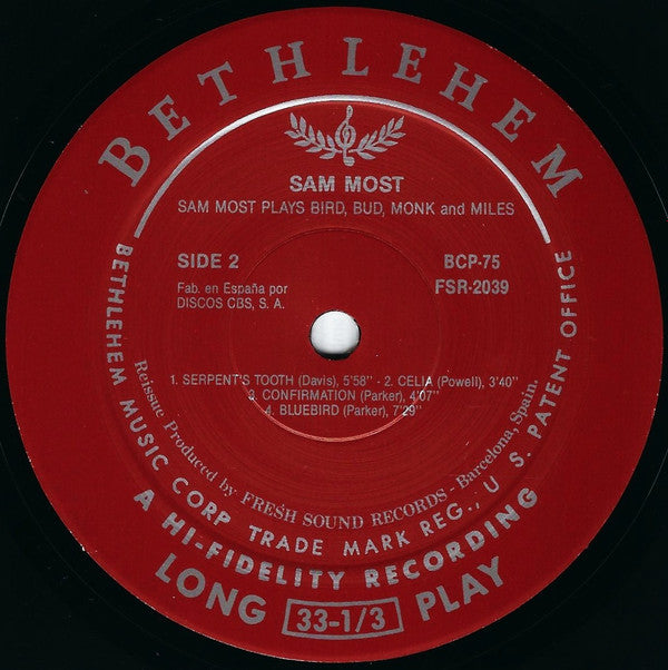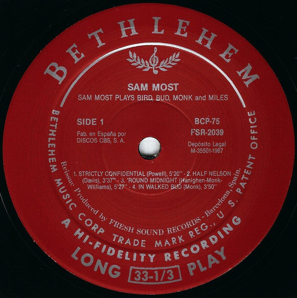 Sam Most - Plays Bird, Bud, Monk And Miles (LP, Mono, RE)