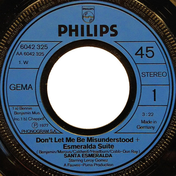 Santa Esmeralda Starring Leroy Gomez - Don't Let Me Be Misunderstood + Esmeralda Suite (7", Single)