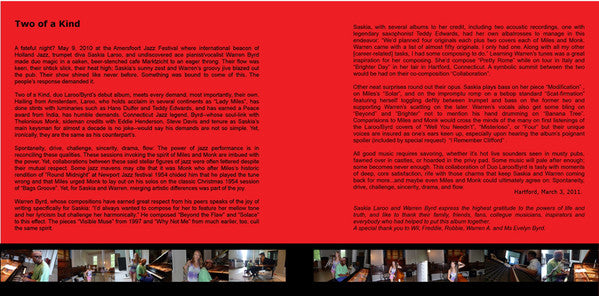 Saskia Laroo & Warren Byrd - Two Of A Kind, Collaboration, A Tribute To Miles & Monk (CD, Album)
