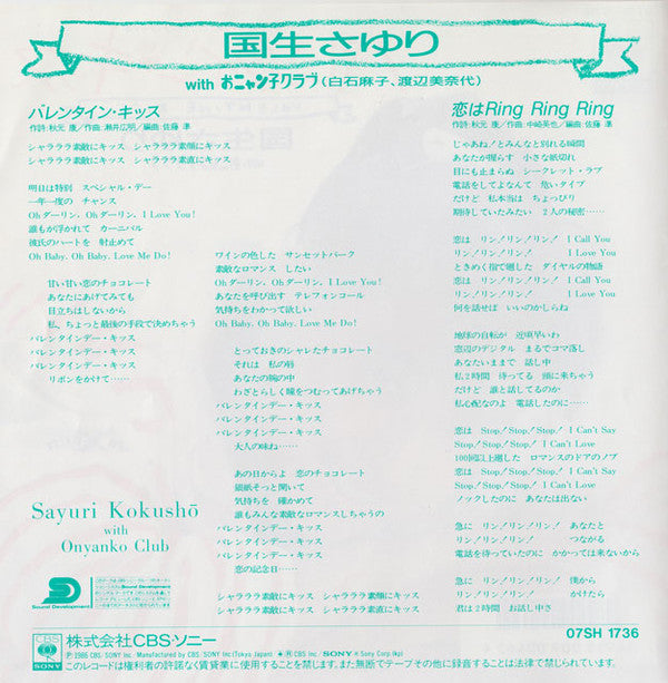 Inserted into the sleeve was a one sided picture cardboard sono sheet disc which contained personal introductions by Sayuri Kokusho and introductions from back up singers of Valentine Kiss.