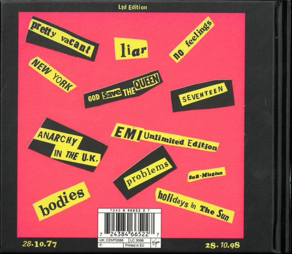 1. Holidays In The Sun 3:102. Bodies 3:003. No Feelings 2:484. Liar 2:395. God Save The Queen 3:176. Problems 4:107. Seventeen 2:008. Anarchy In The U.K. 3:309. Sub-Mission 4:1210. Pretty Vacant 3:1411. New York 3:0312. EMI Unlimited Edition 3:08