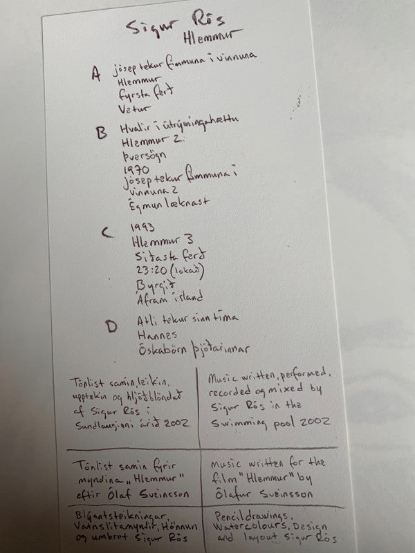 A1. Jósep Tekur Fimmuna Í Vinnuna 3:04 A2. Hlemmur 1:38 A3. Fyrsta Ferð 2:35 A4. Vetur 1:48 B1. Hvalir Í Útrýmingarhættu 3:00 B2. Hlemmur 2 0:43 B3. Þversögn 2:09 B4. 1970 1:14 B5. Jósep Tekur Fimmuna Í Vinnuna 2 1:47 B6. Ég Mun Læknast! 1:54 C1. 1993 1:12 C2. Hlemmur 3 1:19 C3. Síðasta Ferð 2:38 C4. 23:20 (Lokað) 1:42 C5. Byrgið 1:36 C6. Áfram Ísland 1:22 D1. Allt Tekur Sinn Tíma! 2:46 D2. Hannes 2:39 D3. Óskabörn Þjóðarinnar 4:45