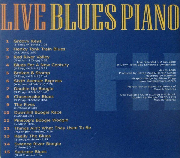 1. Groovy Keys 2. Honky Tonk Train Blues 3. Red River Valley 4. Blues For A New Century 5. Broken B Stomp 6. Sixth Avenue Express 7. Double Up Boogie 8. Cheesecake Blues 9. The Fives 10. Downhill Boogie Race 11. Pinetop's Boogie Woogie 12. Things Ain't What They Used To Be 13. Really The Blues 14. Swanee River Boogie 15. Suitcase Blues