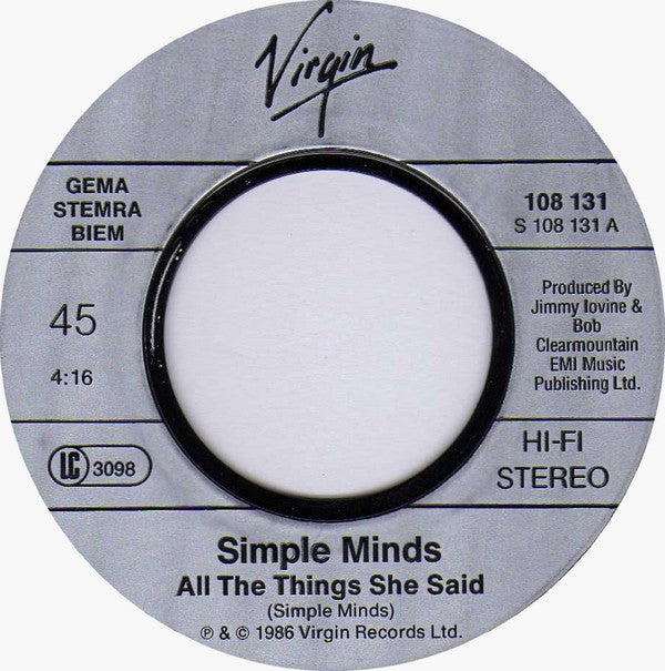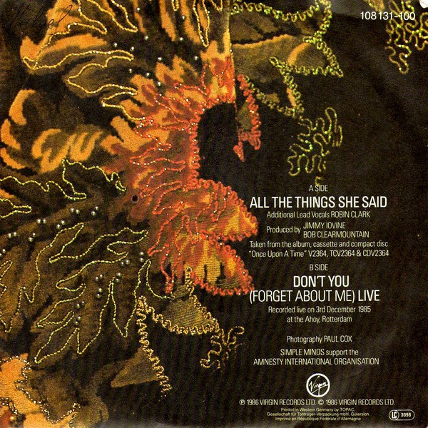 A. All The Things She Said 4:16B. Don't You (Forget About Me) Live 9:05
