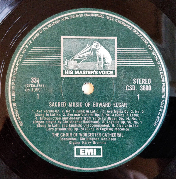 Sir Edward Elgar, Choir Of Worcester Cathedral Conductor: Christopher Robinson, Harry Bramma - Sacred Music (LP, Album)