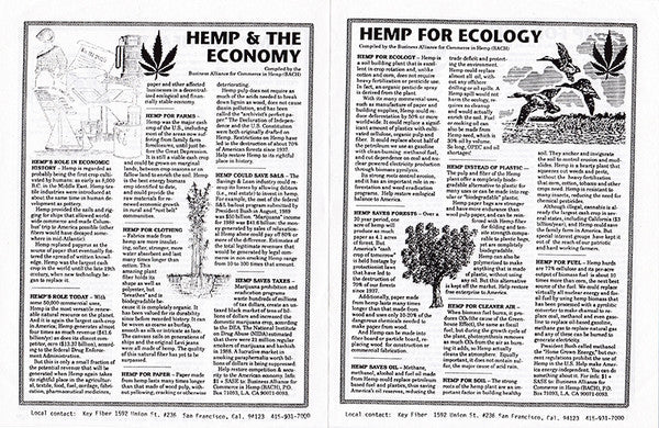 Outer sleeve has a fluorescent "warning" sticker. Includes photocopied pamphlet on the benefits of hemp.