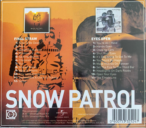 . Final Straw 1-01. How To Be Dead 1-02. Wow 1-03. Gleaming Auction 1-04. Whatever's Left 1-05. Spitting Games 1-06. Chocolate 1-07. Run 1-08. Crazed Knees 1-09. Ways & Means 1-10. Tiny Little Fractures 1-11. Somewhere A Clock Is Ticking 1-12. Same . Eyes Open 2-01. You're All I Have 2-02. Hands Open 2-03. Chasing Cars 2-04. Shut Your Eyes 2-05. It's Beginning To Get To Me 2-06. You Could Be Happy 2-07. Make This Go On Forever 2-08. Set The Fire To The Third Bar 2-09. Headlights On Dark Roads 2-10. Open Your Eyes 2-11. The Finish Line