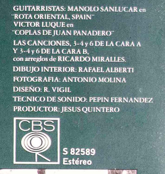 On sleeve gatefold: Poem by Rafael Alberti dedicated to Soledad Bravo.