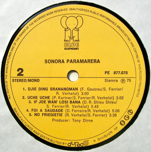 A1. Lobi Dee 4:06 A2. Gro E Teki Ting 5:06 A3. Mi Impie Priet'a Bakka 3:09 A4. Spranang Koekroe 3:58 A5. Kondre Nomroe Wan 3:21 B1. Djie Ding Sranangman 3:00 B2. Uche Uche 3:02 B3. If Joe Wan' Losi Bana 5:45 B4. Foi Au Saudade 5:06 B5. No Friegietie 3:38