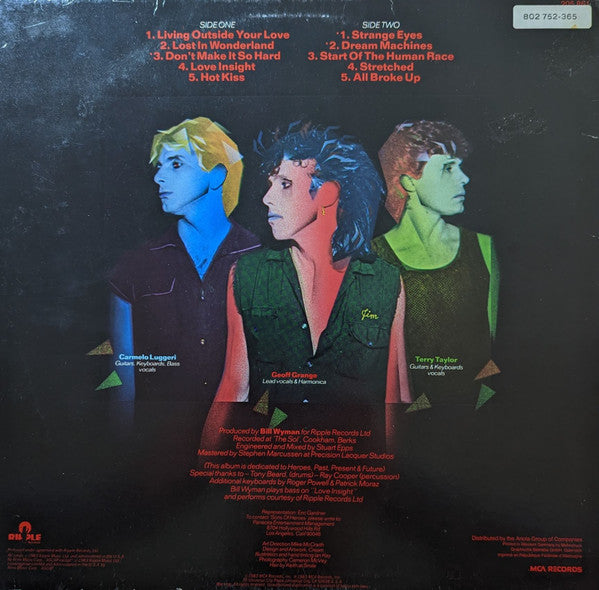 A1. Living Outside Your Love 2:57 A2. Lost In Wonderland 4:13 A3. Don't Make It So Hard 3:23 A4. Love Insight 5:02 A5. Hot Kiss 4:49 B1. Strange Eyes 4:36 B2. Dream Machines 3:37 B3. Start Of The Human Race 4:53 B4. Stretched 3:56 B5. All Broke Up 4:23