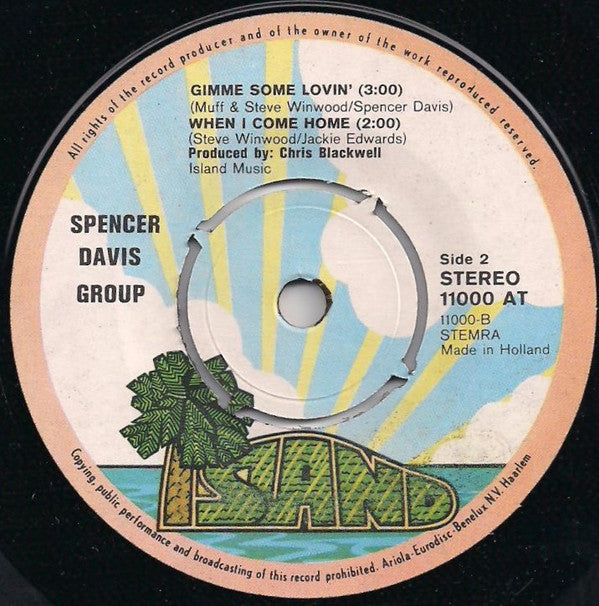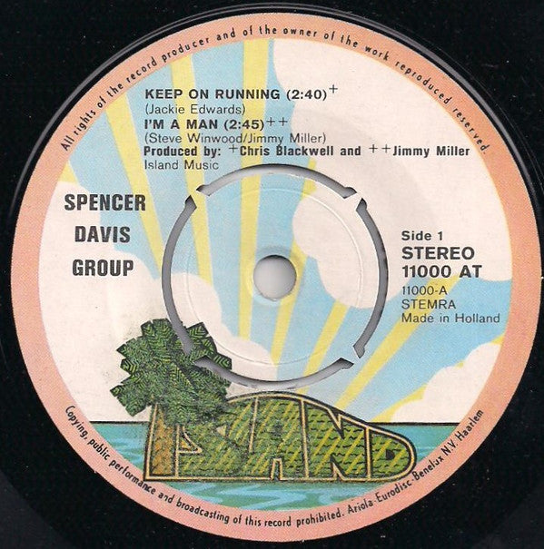 A1. Keep On Running 2:40 A2. I'm A Man 2:45 B1. Gimme Some Lovin' 3:00 B2. When I Come Home 2:00