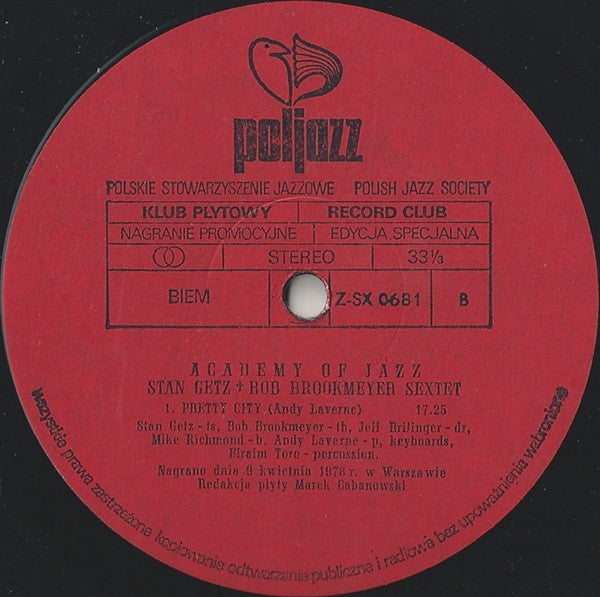 PAN on rear cover: Academy Of Jazz (Stan Getz + Bob Brookmeyer Sextet)