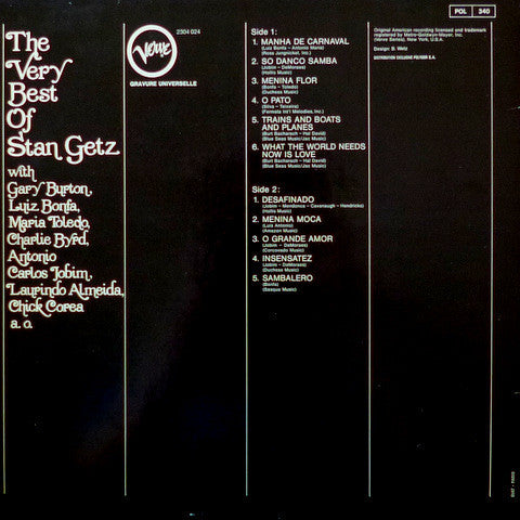 A1. Manha De Carnaval 3:24 A2. So Danco Samba 3:35 A3. Menina Flor 4:05 A4. O Pato 2:35 A5. Trains And Boats And Planes 3:00 A6. What The World Needs Now Is Love 2:55 B1. Desafinado 4:05 B2. Menina Moca 5:45 B3. O Grande Amor 4:43 B4. Insensatez 3:18 B5. Sambalero 2:07
