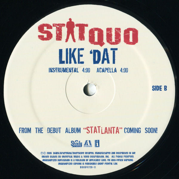 A1. Like 'Dat (Clean) 4:00 A2. Like 'Dat (Dirty) 4:00 B1. Like 'Dat (Instrumental) 4:00 B2. Like 'Dat (Acapella) 4:00