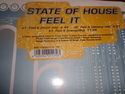A1. Feel It (Room Mix) 4:44 A2. Feel It (Develop Mix) 5:51 B1. Feel It (Tranquility) 11:58