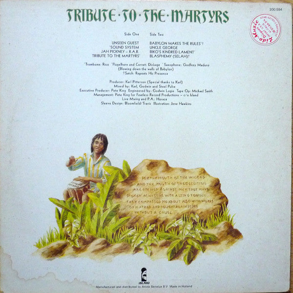 A1. Unseen Guest 5:40 A2. Sound System 3:15 A3. Jah Pickney - R.A.R. 4:10 A4. Tribute To The Martyrs 6:40 B1. Babylon Makes The Rules 4:20 B2. Uncle George 4:40 B3. Biko's Kindred Lament 5:00 B4. Blasphemy (Selah) 7:00