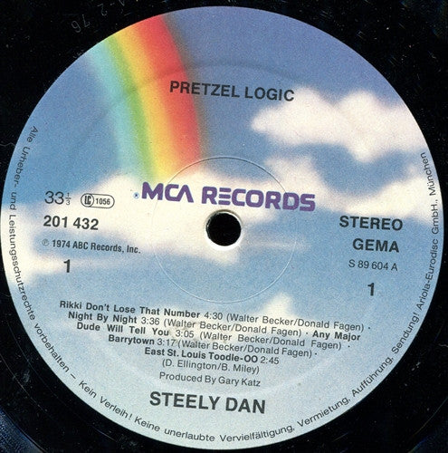 A1. Rikki Don't Lose That Number 4:30 A2. Night By Night 3:36 A3. Any Major Dude Will Tell You 3:05 A4. Barrytown 3:17 A5. East St. Louis Toodle-Oo 2:45 B1. Parker's Band 2:36 B2. Through With Buzz 1:30 B3. Pretzel Logic 4:28 B4. With A Gun 2:15 B5. Charlie Freak 2:41 B6. Monkey In Your Soul 2:31